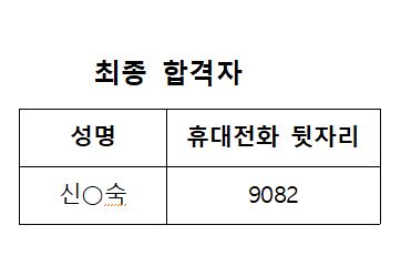 세종시립요양원 직원(요양보호사) 최종합격자를 다음과 같이 공고 합니다.