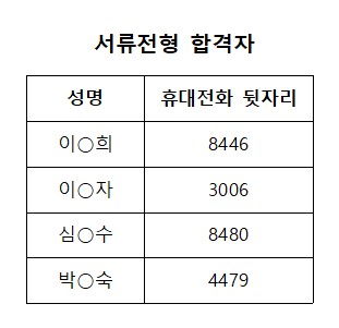 세종시립요양원 종사자 채용 서류전형 합격자를 다음과 같이 공고합니다.